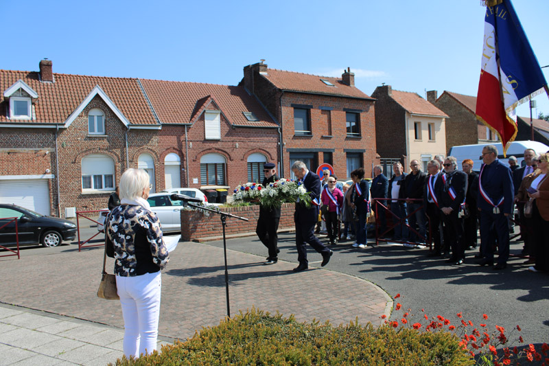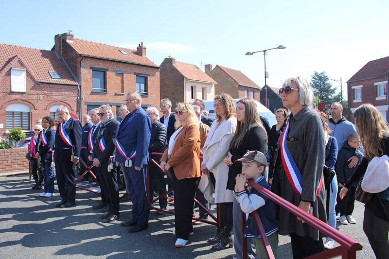 Le groupe a tout d’abord rejoint leurs homologues de Vendin-le-Vieil à la cité 8 pour rendre un hommage commun. Puis, la cérémonie s’est poursuivie en centre-ville.