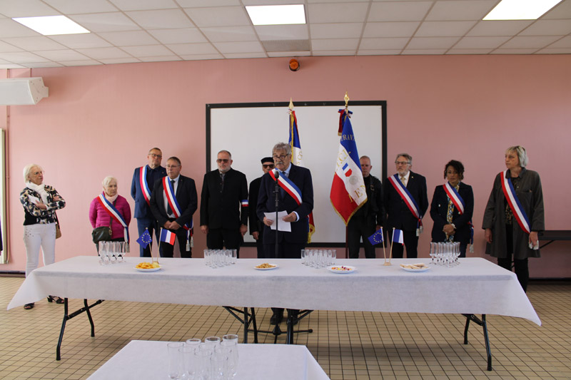 Une fois les gerbes de fleurs déposées et une minute de silence observée, les participants ont repris leur marche jusqu’au monument aux morts de la rue Léon Blum. M. Didier LEFEVERE, président des ACVG, a prononcé quelques mots. Monsieur Daniel KRUSZKA, Maire, en a fait de même à la salle Duhamel en clôture de cérémonie.