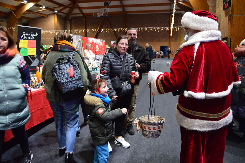 Pour la seconde fois, le marché de noël municipal a pris place dans la halle des sports Cyr Louis Raux offrant ainsi un lieu chaleureux à l’abri des intempéries. Quarante stands proposaient des articles variés sur le thème de la gourmandise et de noël. Il y en avait pour tous les goûts !