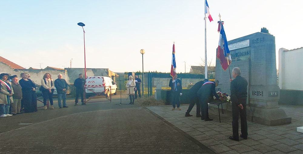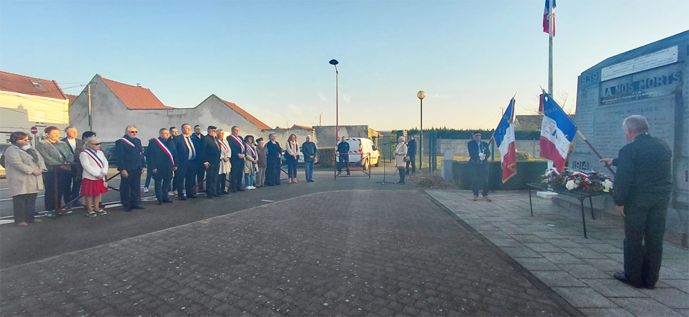 Elus, Anciens Combattants et Victimes de Guerre (ACVG) se sont donc réunis pour honorer la mémoire des soldats tombés au combat. M. Jacky LELONG, 1er Adjoint au Maire, et M. Didier LEFEVERE, président des ACVG, ont tous deux pris la parole quelques instants. Des gerbes de fleurs ont été déposées devant les monuments et toute l'assemblée a observé une minute de silence.