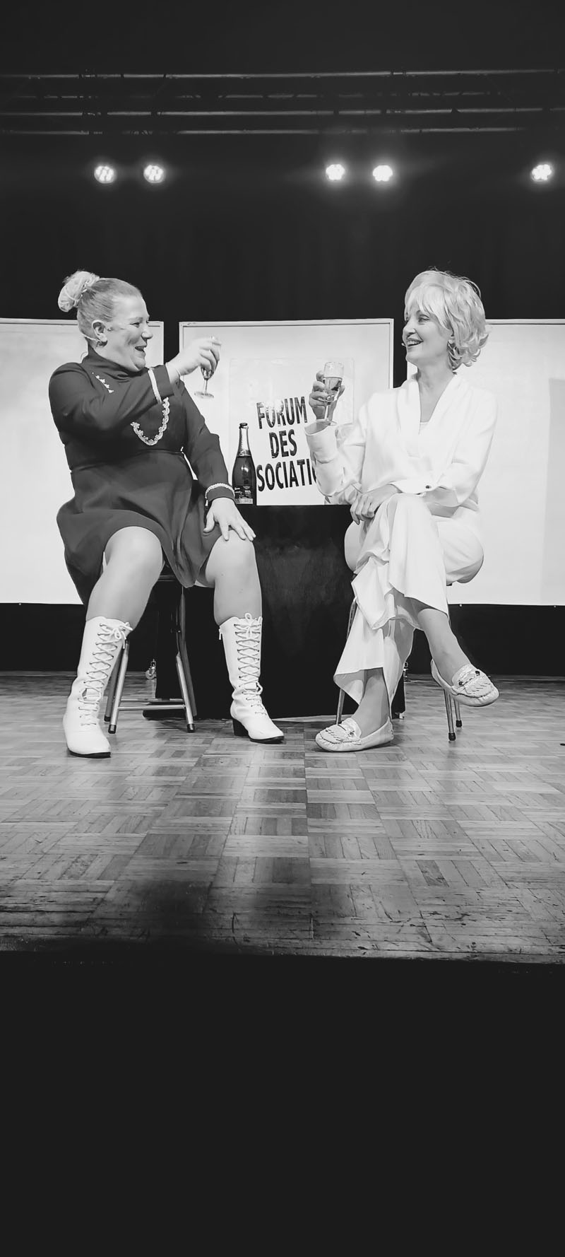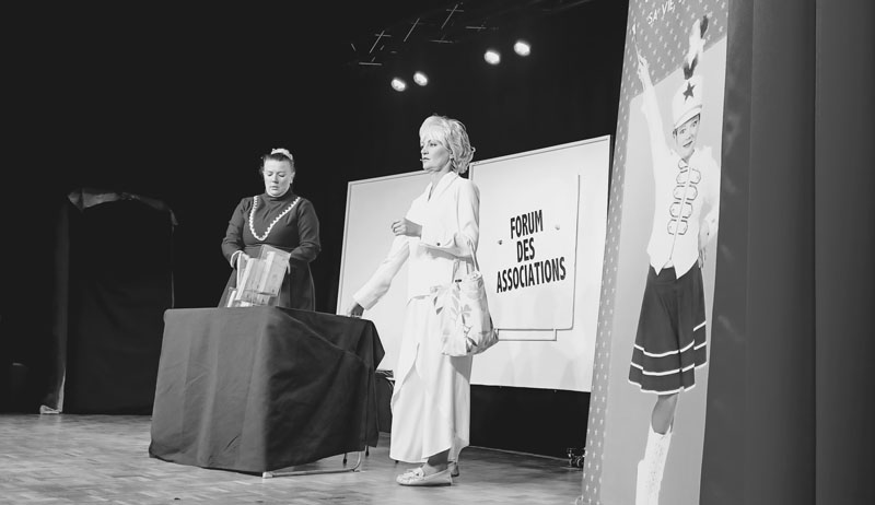 Emilie Deletrez et Marielle Duroule, les deux comédiennes du show, ont emmené le public dans leur univers. Guislaine, allias Guigui, et personnage principal de la pièce, a dévoilé sa vie et sa passion pour les majorettes, notamment pour les Gracieuses du Nord dont elle en a la présidence. Flash-back, fous rires et tenues inoubliables ont comblé la foule pendant plus d’une heure quinze.