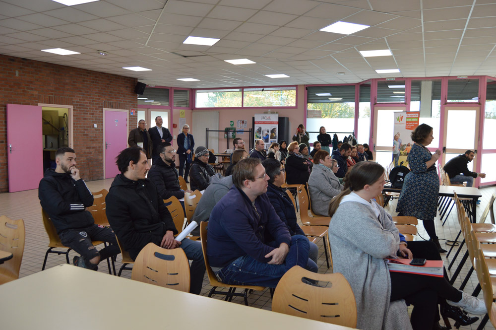 Une brève présentation leur a fourni des indications sur les secteurs d’emploi en demande dans le bassin minier ainsi que sur l’état actuel du marché du travail. Puis les participants ont pu prendre contact avec les entreprises, agence d’intérim et association présentes sur leur stand d’information afin d’échanger et de convenir d’un rendez-vous d’entretien professionnel.