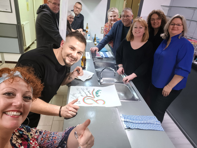 Notons la présence derrière le bar du Centre d’Animation Jeunesse et des membres d’Anim’le 8 qui ont proposé une petite restauration et des boissons fraîches la soirée durant.