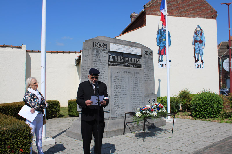 Une fois les gerbes de fleurs déposées et une minute de silence observée, les participants ont repris leur marche jusqu’au monument aux morts de la rue Léon Blum. M. Didier LEFEVERE, président des ACVG, a prononcé quelques mots. Monsieur Daniel KRUSZKA, Maire, en a fait de même à la salle Duhamel en clôture de cérémonie.