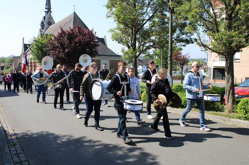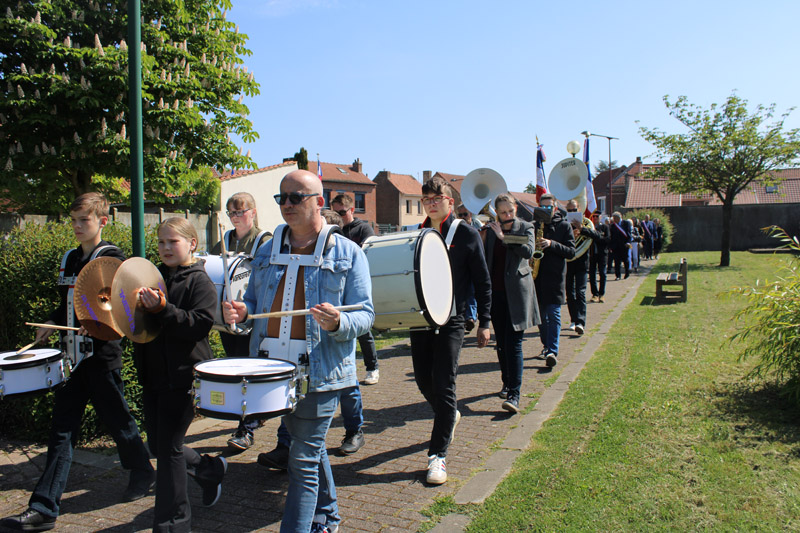 Rendez-vous était donné devant la Maison Commune afin de prendre le départ du cortège direction le carré militaire du cimetière. Les personnes présentes ont marché au rythme des musiciens de l’Harmonie « La Jeunesse », eux-mêmes accompagnés de quelques percussionnistes de l’école de musique.