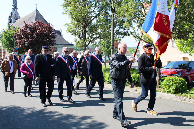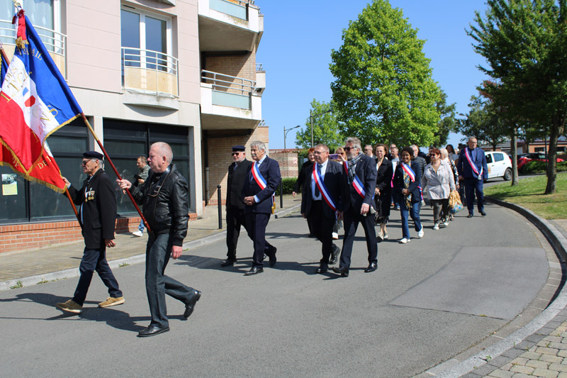 Le groupe a tout d’abord rejoint leurs homologues de Vendin-le-Vieil à la cité 8 pour rendre un hommage commun. Puis, la cérémonie s’est poursuivie en centre-ville.