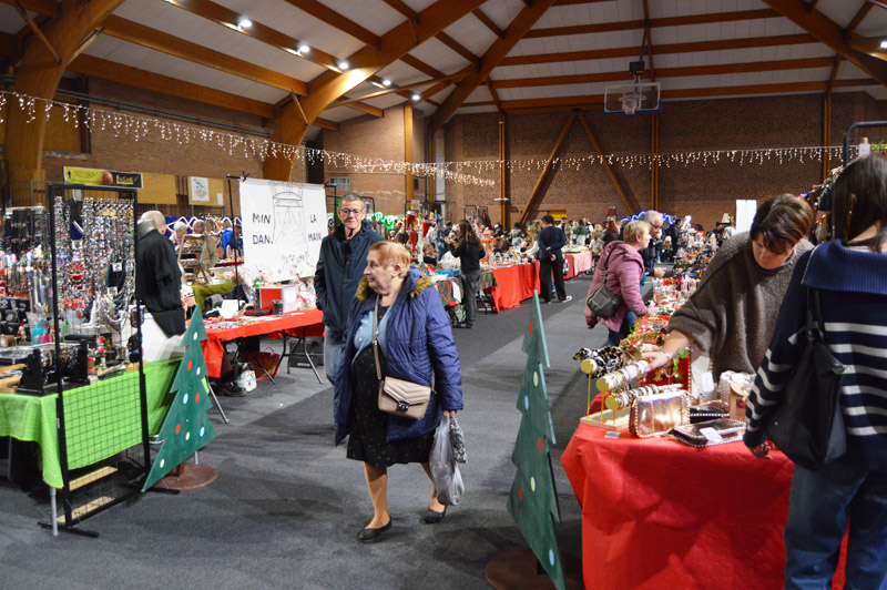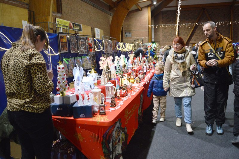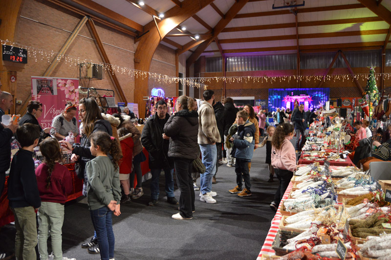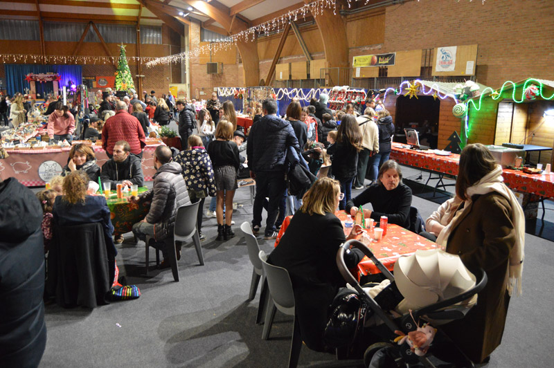 Pour la seconde fois, le marché de noël municipal a pris place dans la halle des sports Cyr Louis Raux offrant ainsi un lieu chaleureux à l’abri des intempéries. Quarante stands proposaient des articles variés sur le thème de la gourmandise et de noël. Il y en avait pour tous les goûts !