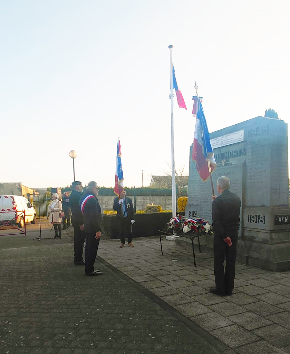 Elus, Anciens Combattants et Victimes de Guerre (ACVG) se sont donc réunis pour honorer la mémoire des soldats tombés au combat. M. Jacky LELONG, 1er Adjoint au Maire, et M. Didier LEFEVERE, président des ACVG, ont tous deux pris la parole quelques instants. Des gerbes de fleurs ont été déposées devant les monuments et toute l'assemblée a observé une minute de silence.