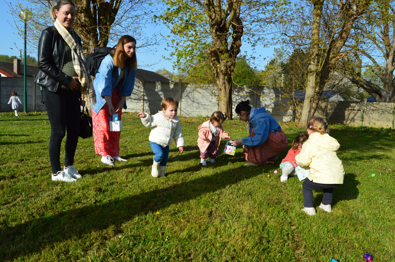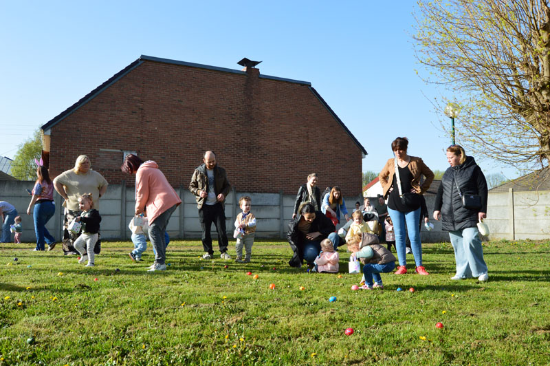 Près de 30 bambins ont participé à cette matinée festive sous un soleil éclatant. Ils se sont appliqués à récolter les 800 œufs colorés qui ont été dispersés pour l'occasion. Deux œufs noirs ont fait deux heureux ! Ils donnaient droit à un énorme sujet en chocolat !